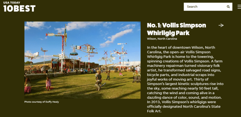 The award follows a four-week public voting period that featured 10 sculpture parks from across the United States. The recognition places Wilson’s iconic collection of large-scale kinetic sculptures at the top of the list, celebrating both the artistic legacy of Vollis Simpson and the collaborative effort that brought his visionary work to life in the heart of downtown.